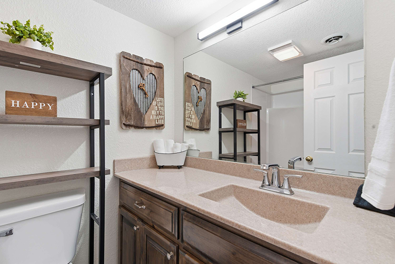 This home also includes a full guest bathroom with a single vanity and a shower/tub combo.